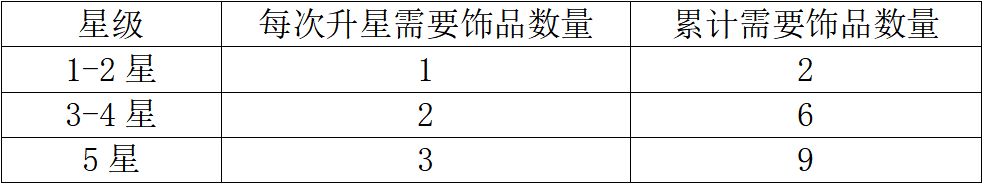 所以,加上最初的本体一共要10饰品个就可到5星。