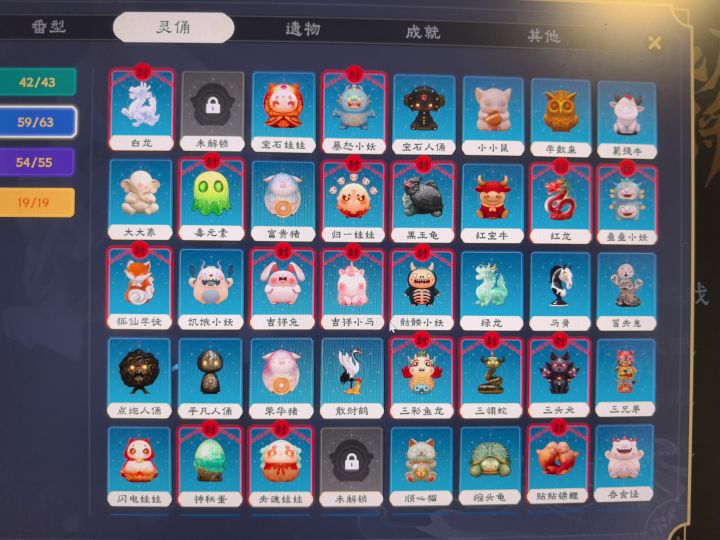 71个成就已经全部做完了,人物全难8通关,所有牌型都已经胡过,但是居然还有好多灵俑和遗物没解锁,点击都是显示暂未配置解锁方式