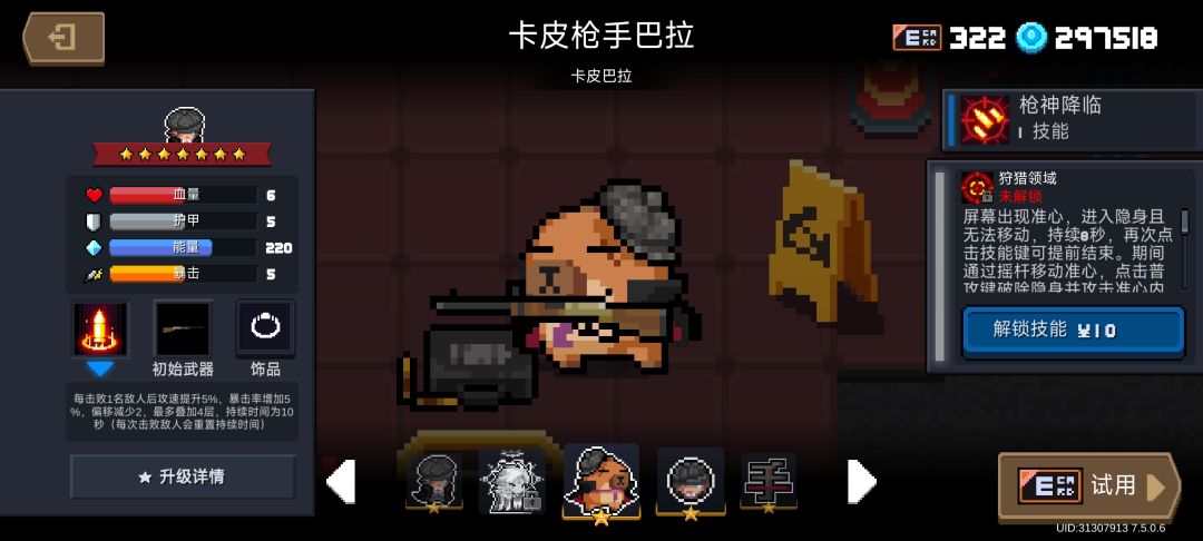 3.关卡结束后,可以双击技能,白嫖隐身加速效果,减少通关时间。