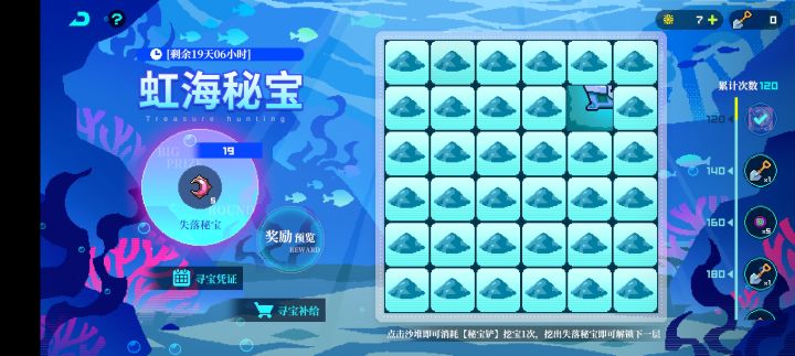 挖宝次数➗层数KD在6.0左右,可以反向预测层数需要的铲子,比如我现在123次20层KD就是6.15,假设100层大概就是615次,方法正确浮动不大,该方法首轮红色为4✖️9切割,第二轮黄色为4✖️6➕4切割,最后为黑色中心天命,极限次数为9(找到)➕3(开箱),天崩地裂12手