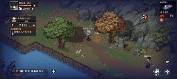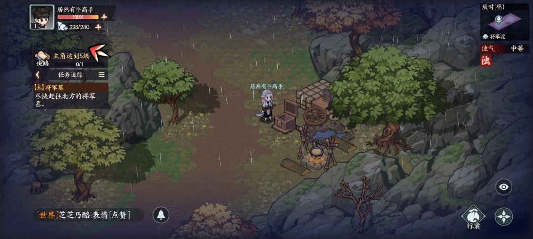 两个采集点:甘草,树莓。第一个宝箱里拿铲子路上挖土堆得到士兵旧剑。跟着主线完成后先不去七侠镇,先回将军渡把资源采集了进入将军墓后往左上方发现机关,把旧剑嵌入后发现秘密宝箱,内有轻功掠风决,将军渡探索度完结获得斗笠外观。