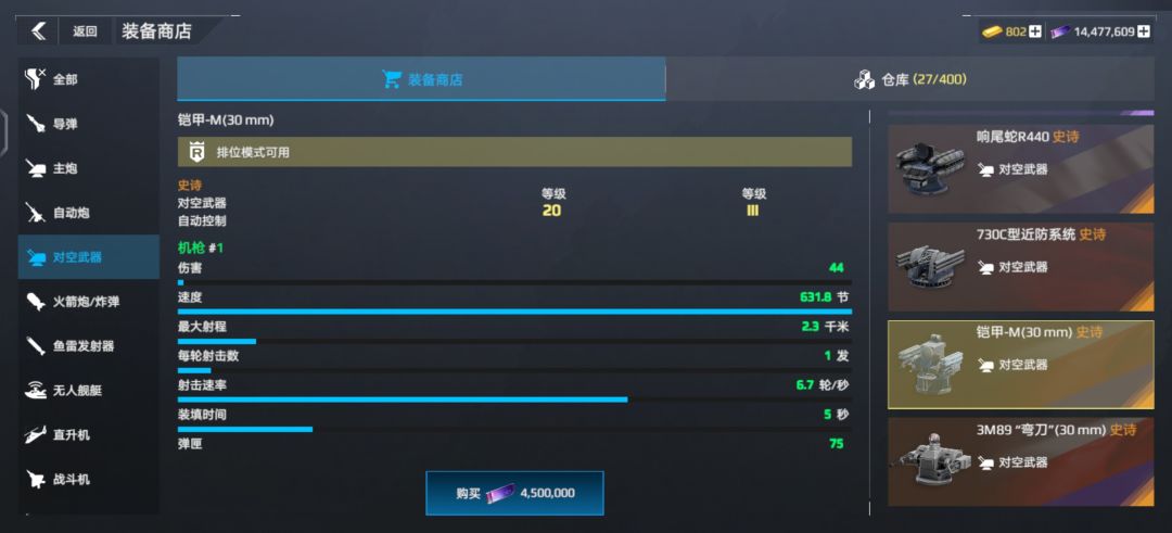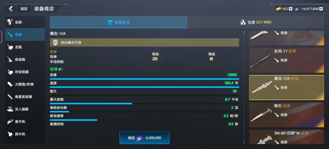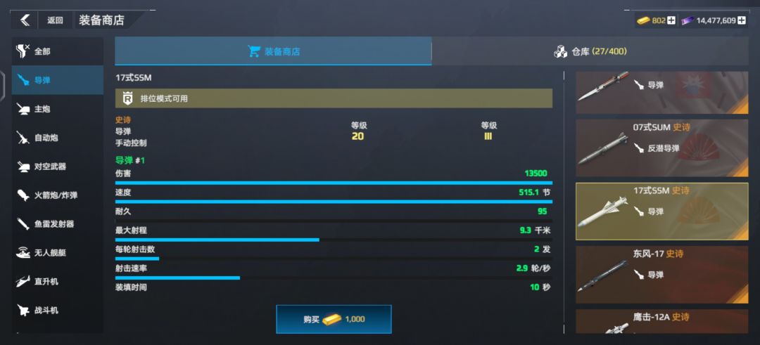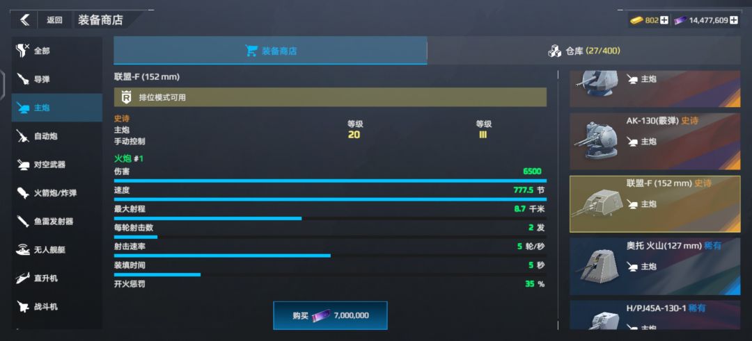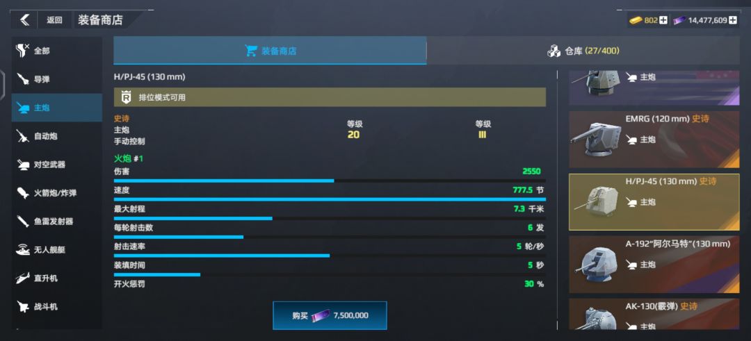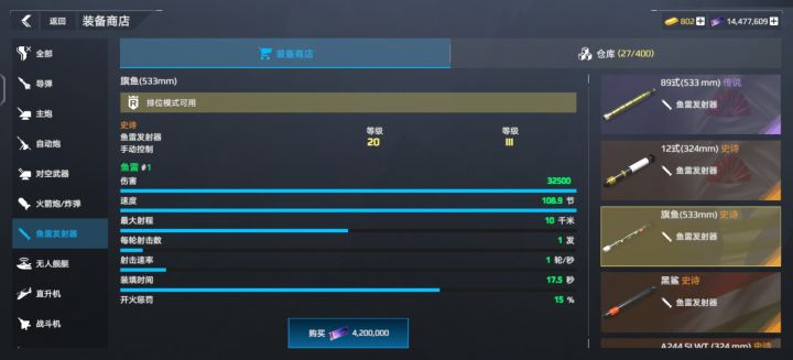 导弹不多说,按经济情况选择图片里的;火箭炮目前就762好用;主炮推荐联盟和黄浦江(黄浦江名字为英文谐音);鱼雷可选择旗鱼(当然黑鲨也可以不过前段时间有网友反驳up);防空毋庸置疑用铠甲。