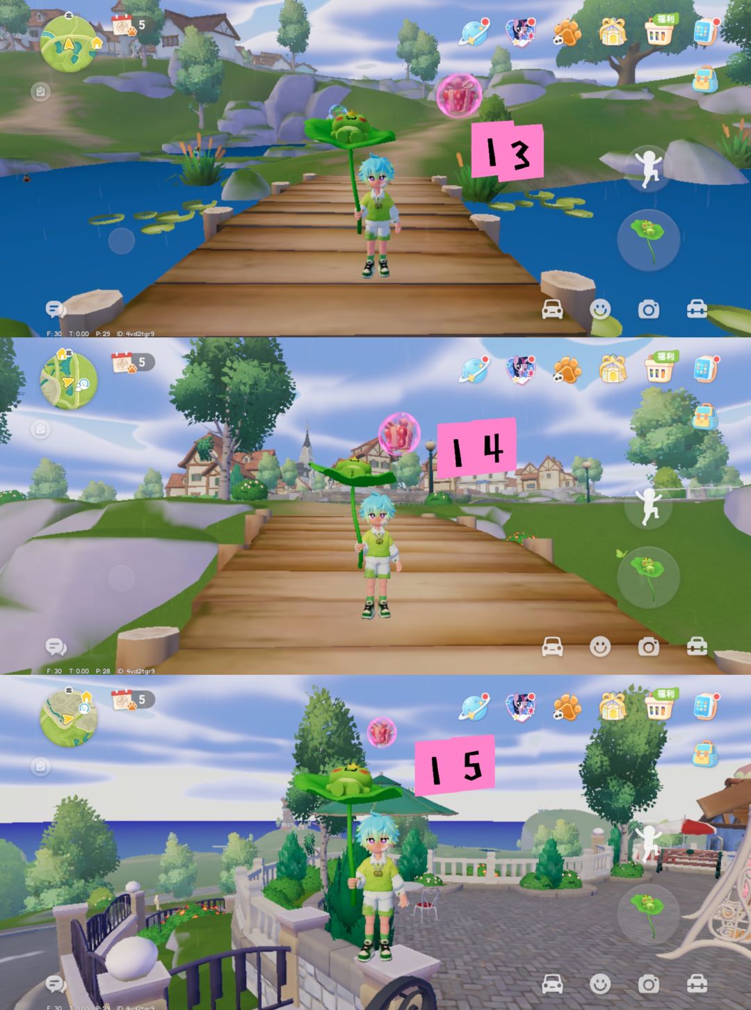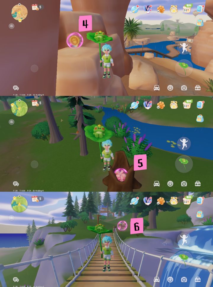 粉红泡泡位置分布:图一地图的15处爱心标记,分别在温泉山4处、森林2处 、渔村4处、花田2处、镇中心3处。 粉红泡泡里有随机送拼图盒子!
