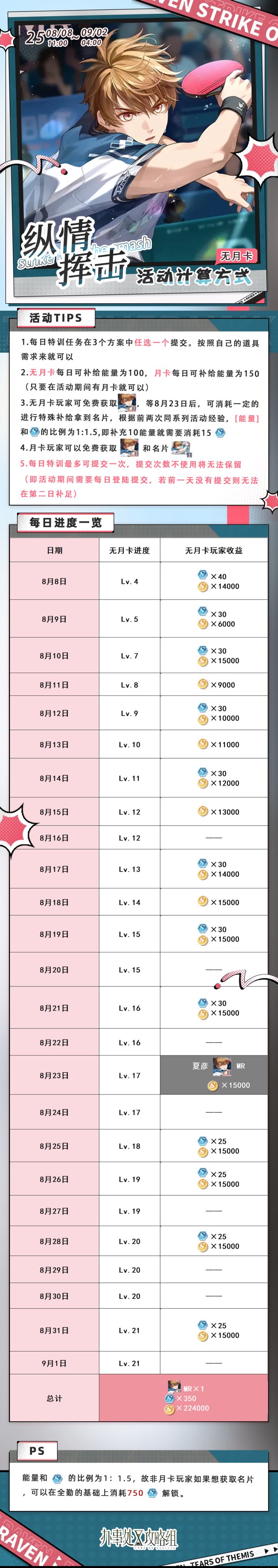 2.无月卡玩家可免费获取mr,等8月23日后, 可消耗一定的进行特殊补给拿到名片,根据前两次同系列活动经验,[能量]和【未名晶片】的比例为1:1.5,即补充10能量就需要消耗150晶片
