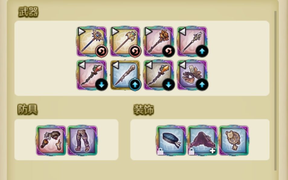 武器跟主输出武器放同一属性(必须),然后在选择魔攻较高的放(可以不放杖,但一定要是同属性)。本期密特拉是光属,那就全放光武器,下期风池就全放风属性。