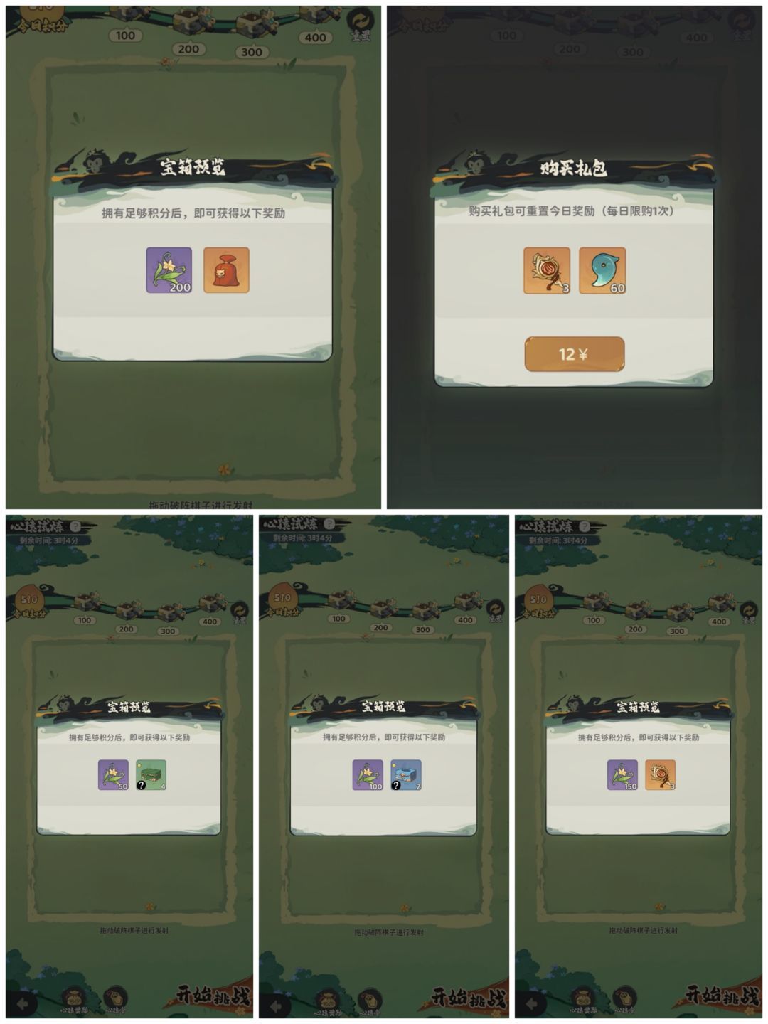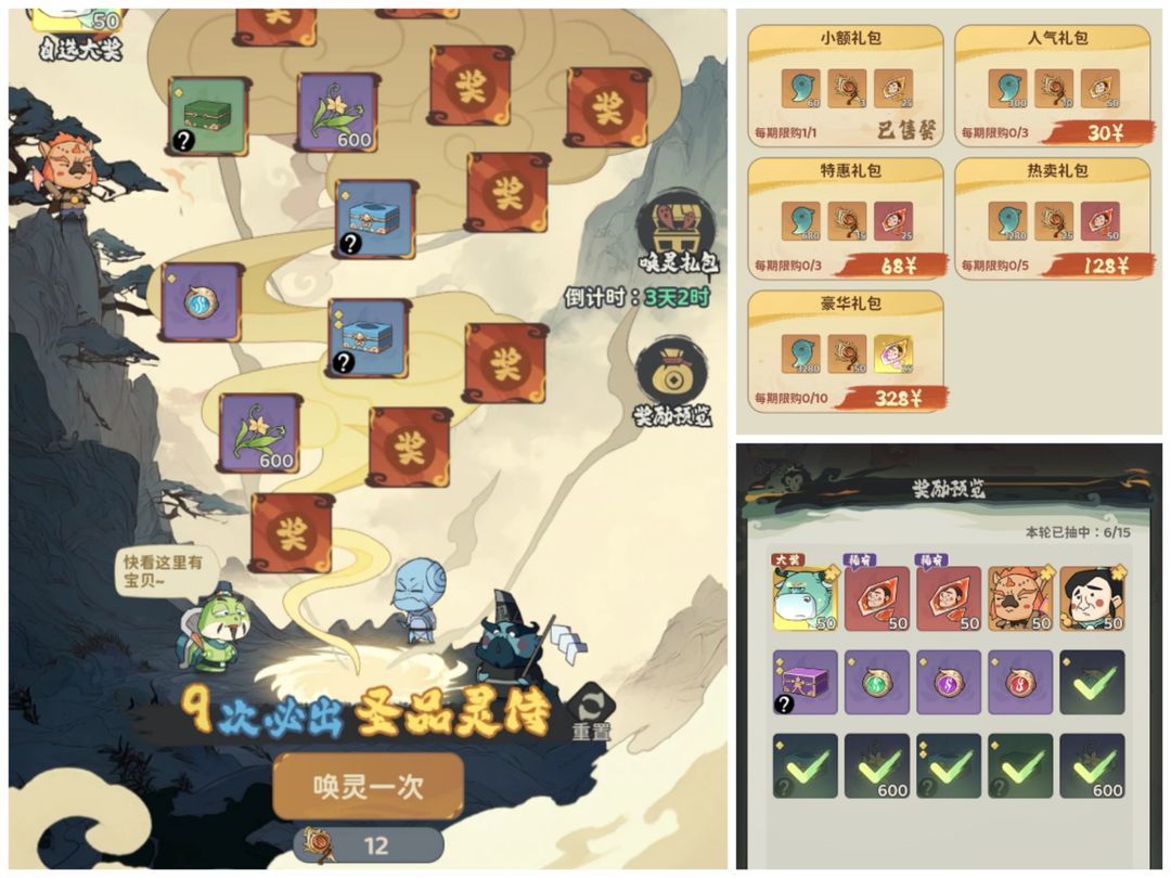 小游戏每100分段的奖励,400分的袋子可以开出极品和绝品灵侍碎片。12元可以重置一次游戏,再拿一份每日奖励。12元可多拿6个道具,类似法宝和守护的每日礼包。目前发现若第一次袋子开出来绝品灵侍,重置后获得的袋子也会大概率开绝品碎片。
