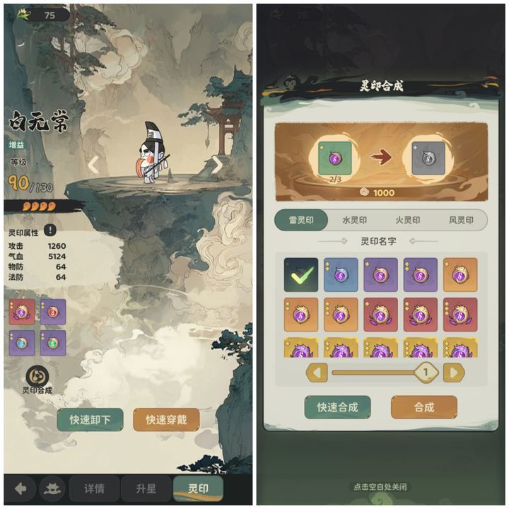 图6.左侧为灵印主界面,右侧为灵印合成界面