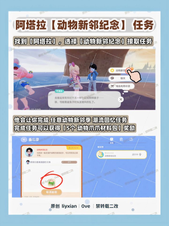 ① 阿塔拉【动物新邻纪念】任务:图2(奖励:5个动物爪爪材料包)