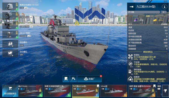 九江舰作为一艘二级护卫舰拥有不俗的强制伤害,并且有着比三级南昌舰满级24节还快的25.3节速度,是一艘非常值得推荐的船。