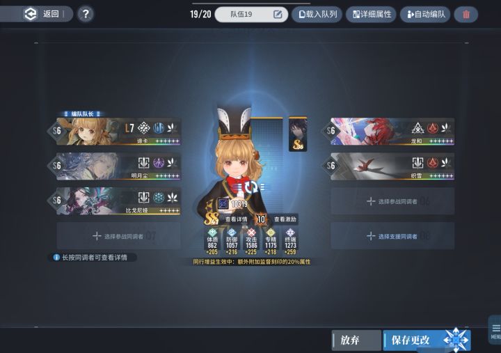 队友搭配如下,织雪、龙和,比戈尼娅,谛卡上,比格尼亚叠完攻速,换明月尘(也可以选择珑)二选一上场(为了触发棺中鸟加的刻印攻击)