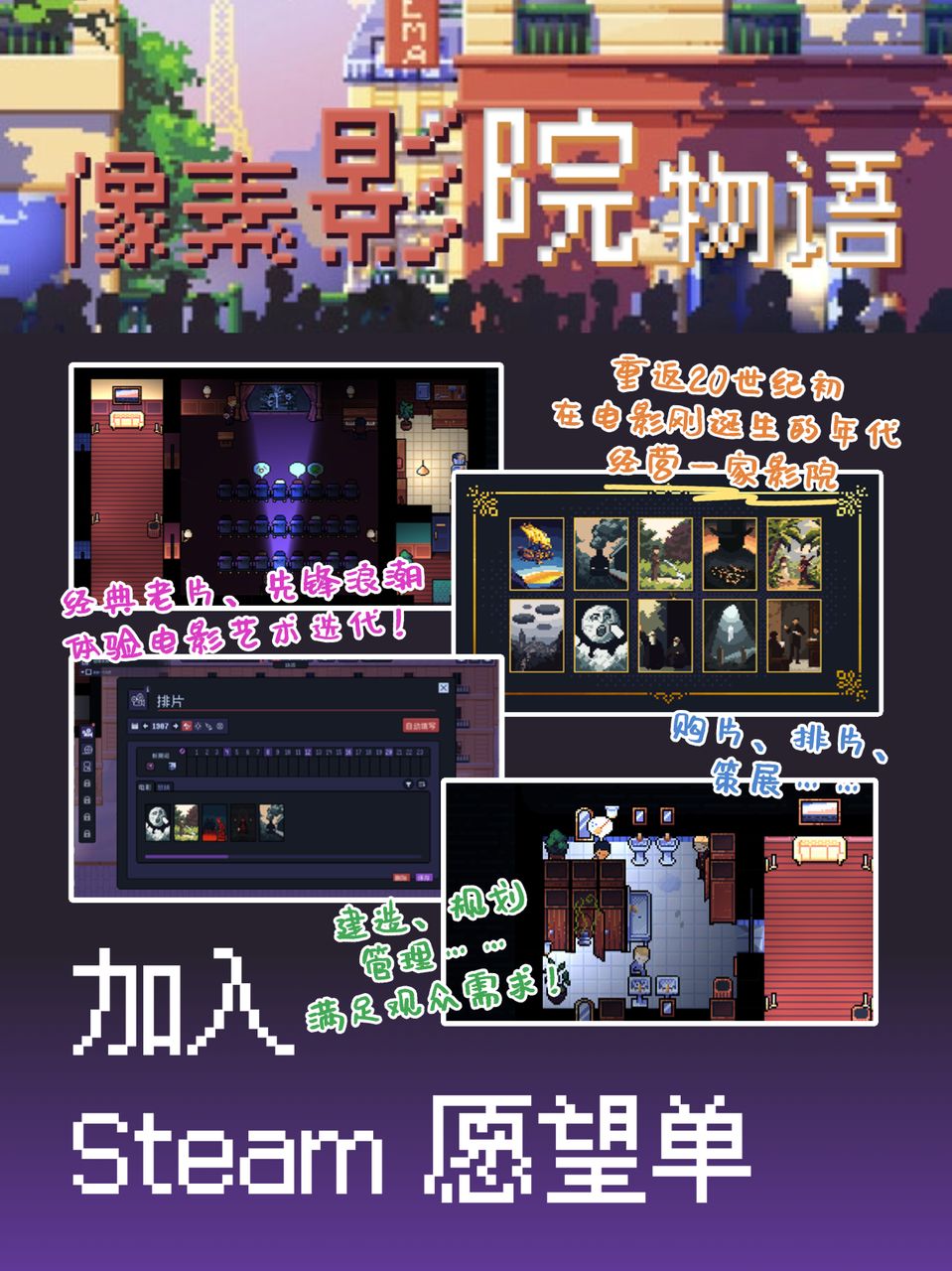 游戏试玩版已上线,感兴趣的朋友们快来《像素影院物语》看看吧🎉!