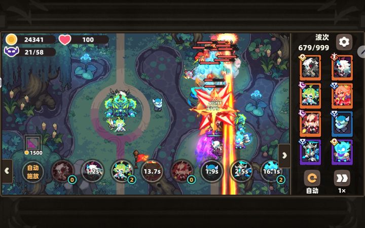 雪球55左右后,后面的几百波都是垃圾时间,只用关注BOSS波和右路数字60的情况。循环点列拉金的攻击,莫拉格斯的攻击,夏的加钱,看情况补雪球等级。