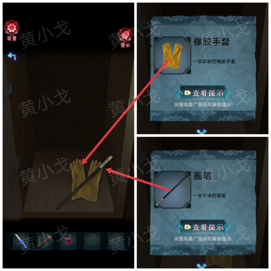 14.打开柜子,获得【画笔】和【橡胶手套】