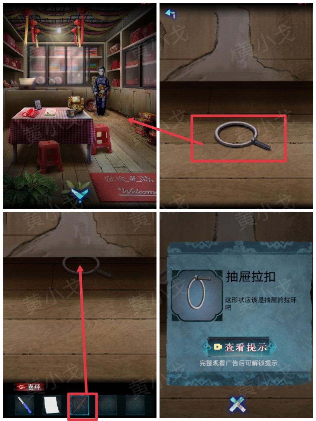 25.点击柜子下方的拉扣,触发剧情,用【喜称】够出【抽屉拉扣】