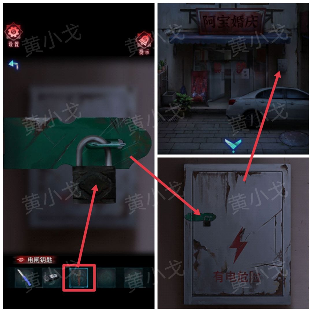 9.点击电箱上的锁,用【电闸钥匙】打开