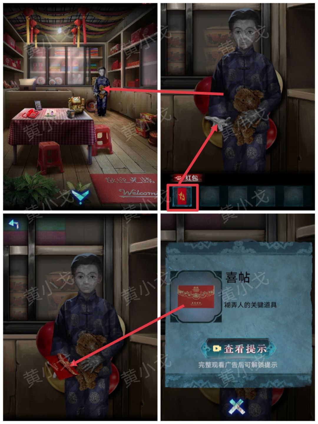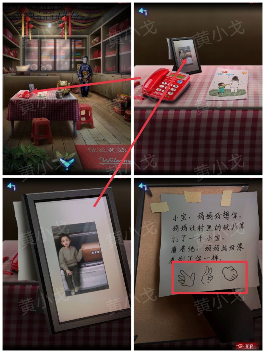 4.点击海报,打开新娘的手,获得线索。然后与小男孩对话。