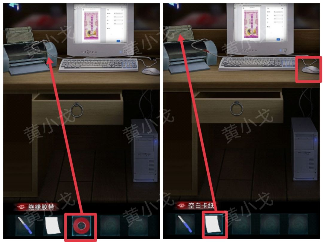 28.用【绝缘胶带】把破损的电线接起来,把【空白卡纸】放入打印机中,按下鼠标打印