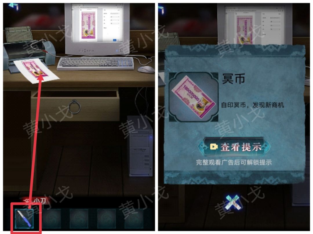 8.点击桌子,获得【小刀】、【车钥匙】和【电闸钥匙】