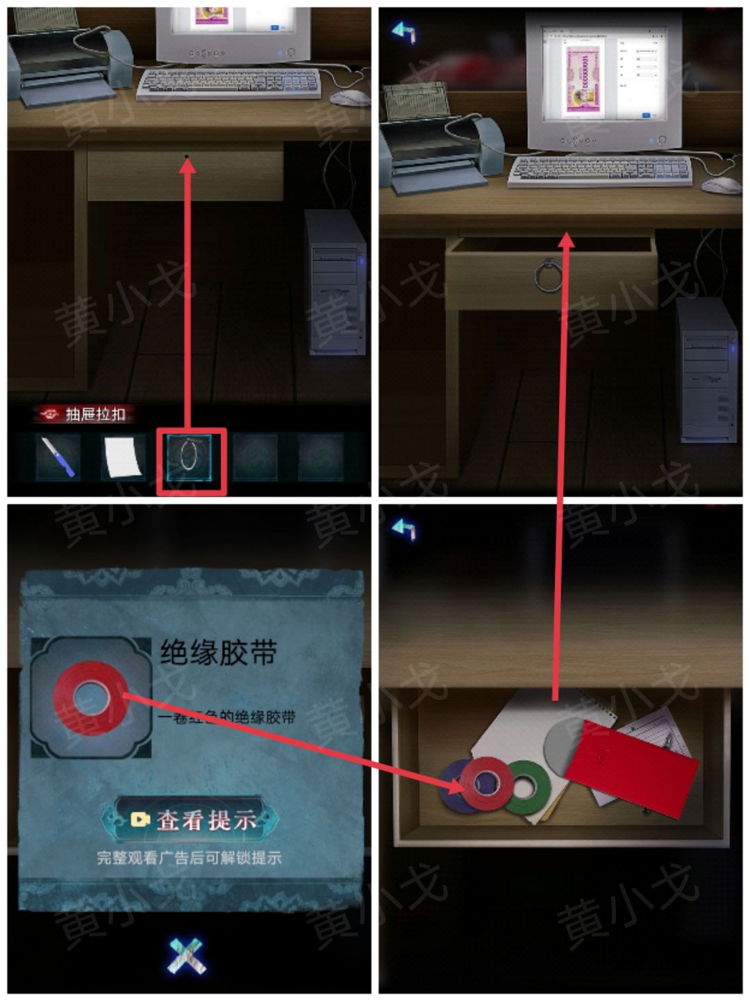 26.点击柜台,给抽屉装上【抽屉拉扣】;打开抽屉,获得【绝缘胶带】