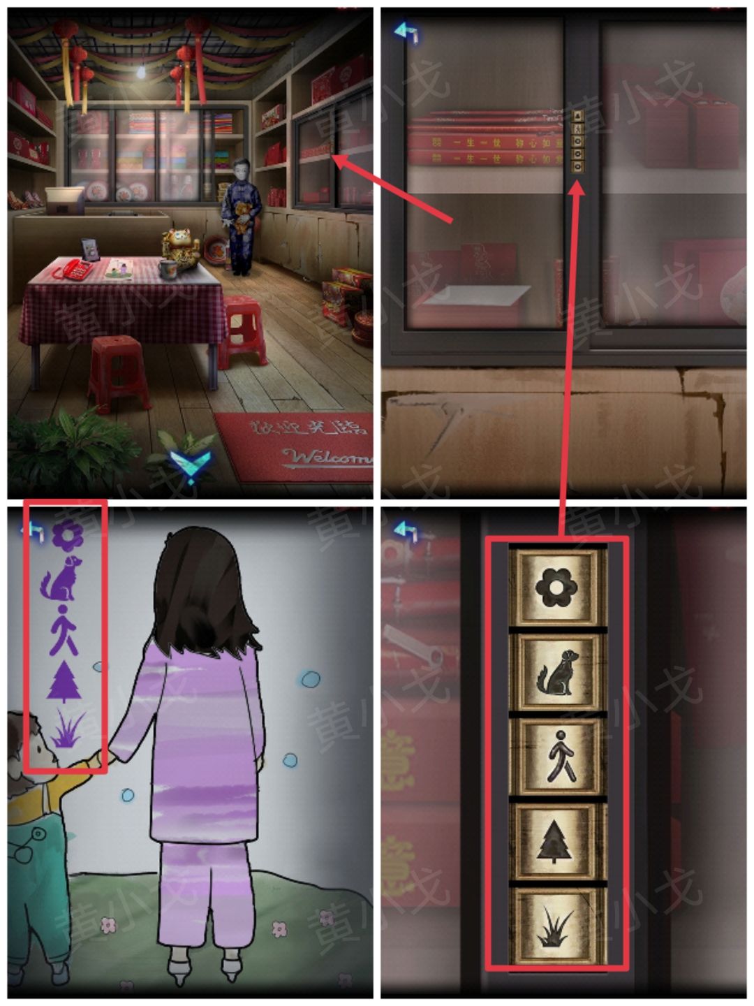 23.点击柜子上的密码锁,根据画上的线索,调整密码锁