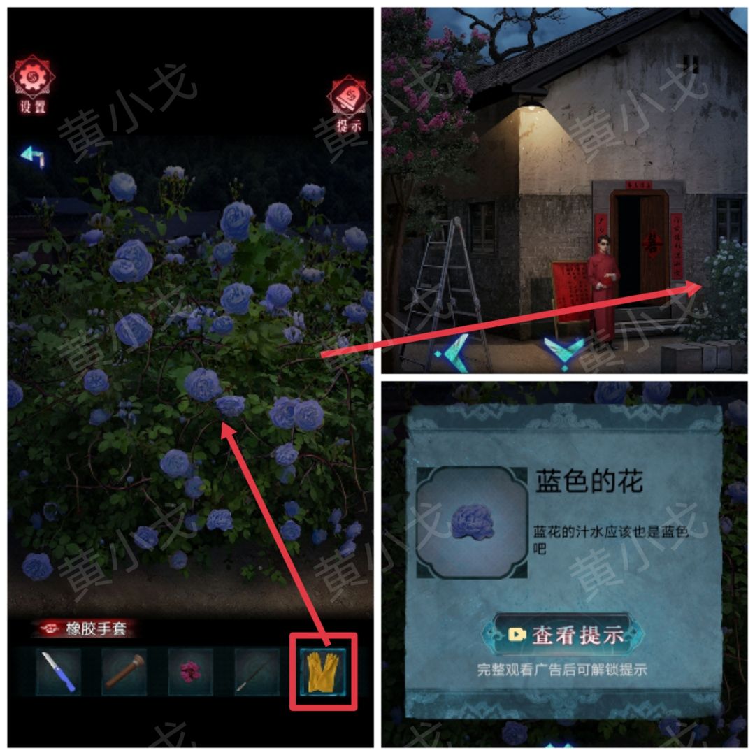 20.点击花丛,用【橡胶手套】摘取【蓝色的花】