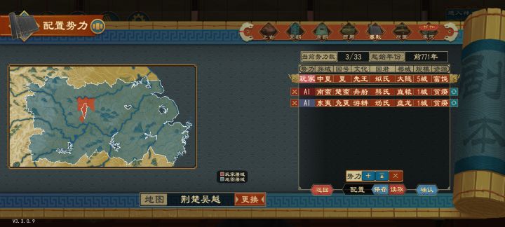 首先先选择最简单的局部地图,然后再选两个国家如图2所示(我把这三个国家都城都放在一起了方便一开局就开打),时代什么的都随便。再给自己要玩的国家改国号,最后进入剧本带兵直接攻打5分钟搞定。