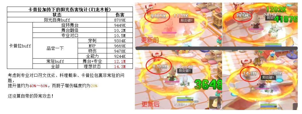 以阳光幻龙本为例,卡普拉可为其提供约40%~60%直接增伤!