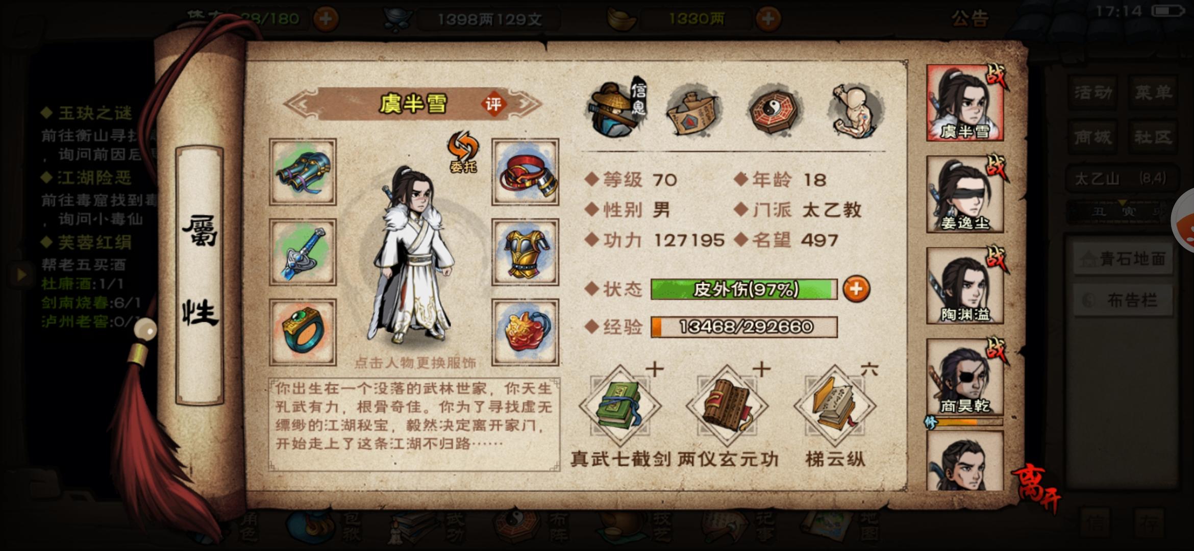 大佬们刚到七十级出师三阶师傅道愚,接下来要继续拜清虚学镇派吗,看wiki上说十一剑和星云剑诀都不适合开荒,要不要判门啊,或者再拿点什么东西,秘技目前只拿了2个,本人拘魂阁主pve玩法零氪,大佬们有什么建议吗