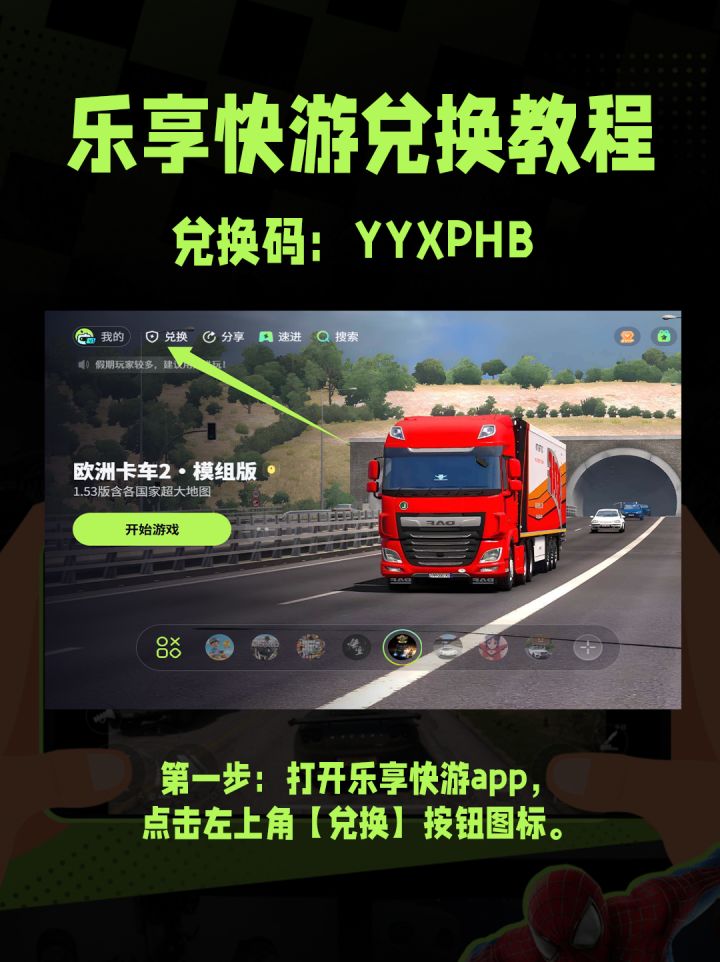 打开乐享快游 APP,左上角有个【兑换】按钮,点它!
