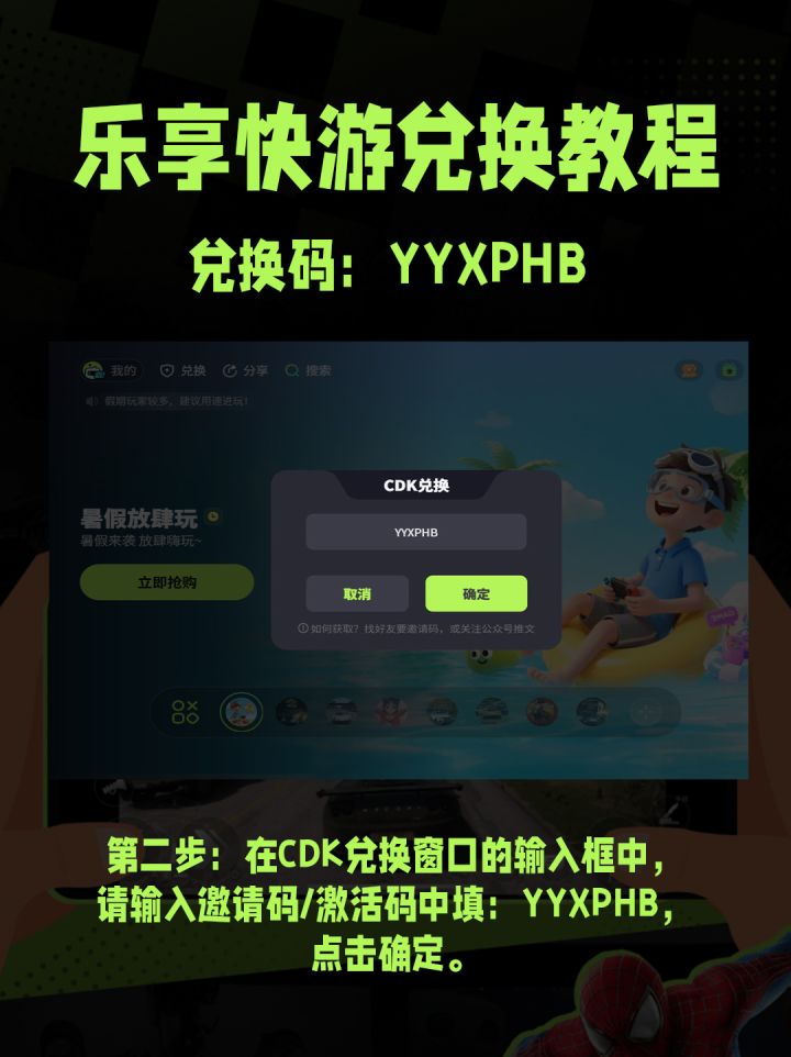 弹出 CDK 兑换窗口后,在输入框里填兑换码 YYXPHB,点确定