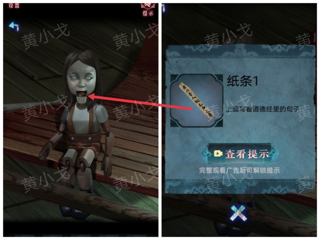 23.木偶嘴巴打开,获得【纸条1】