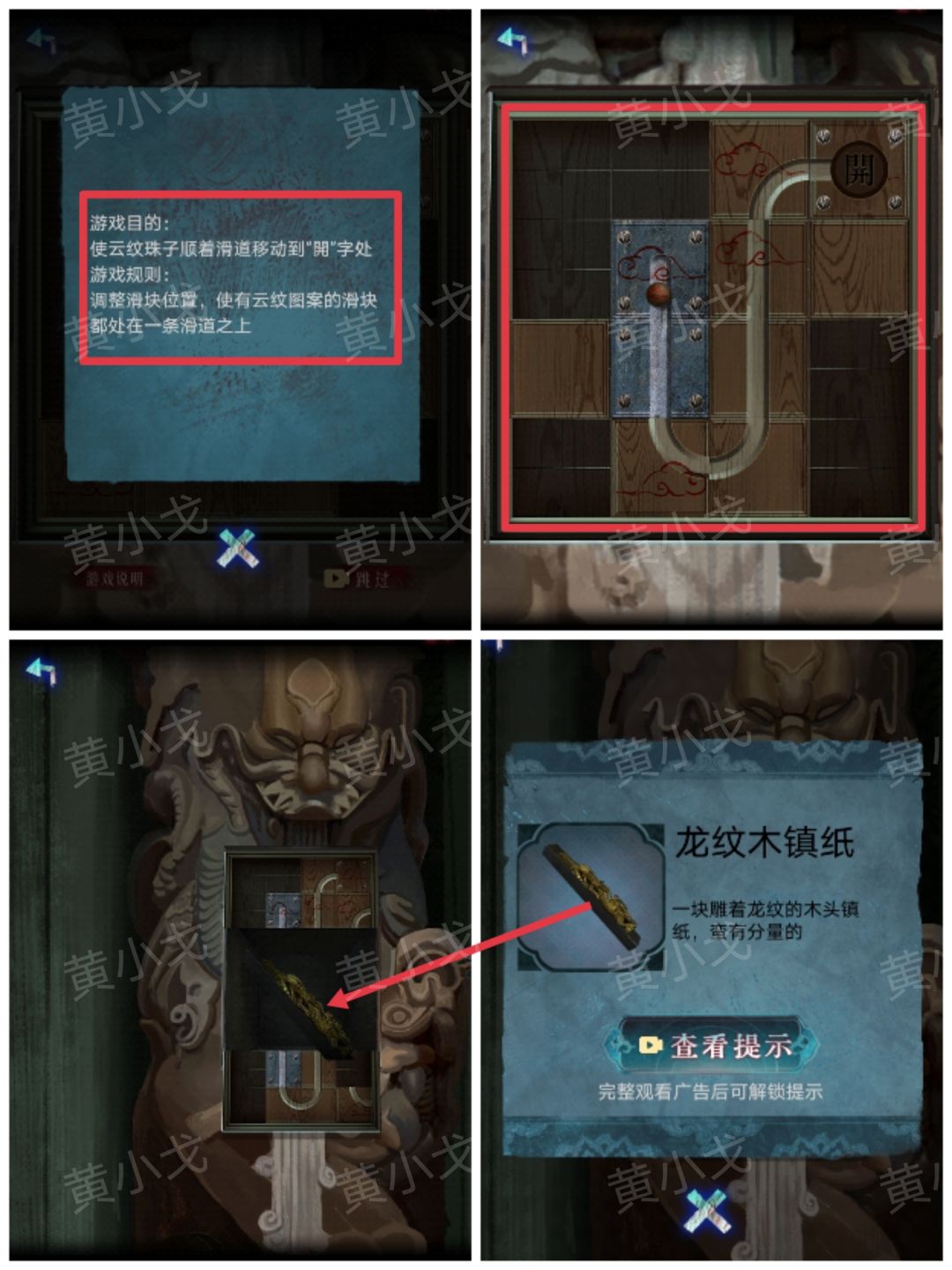 21.查看游戏说明,完成小游戏;打开暗格,获得【龙纹木镇纸】