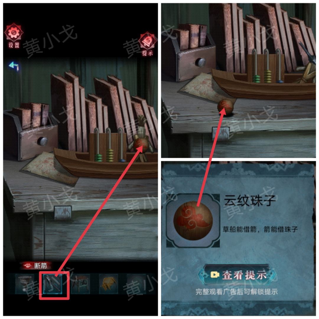 19.用【断箭】击倒小人,获得【云纹珠子】