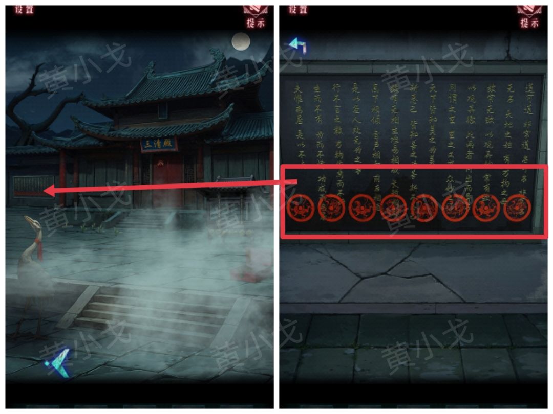 3.点击香炉,根据墙上的四象图案顺序,按顺序依次点击四象按钮