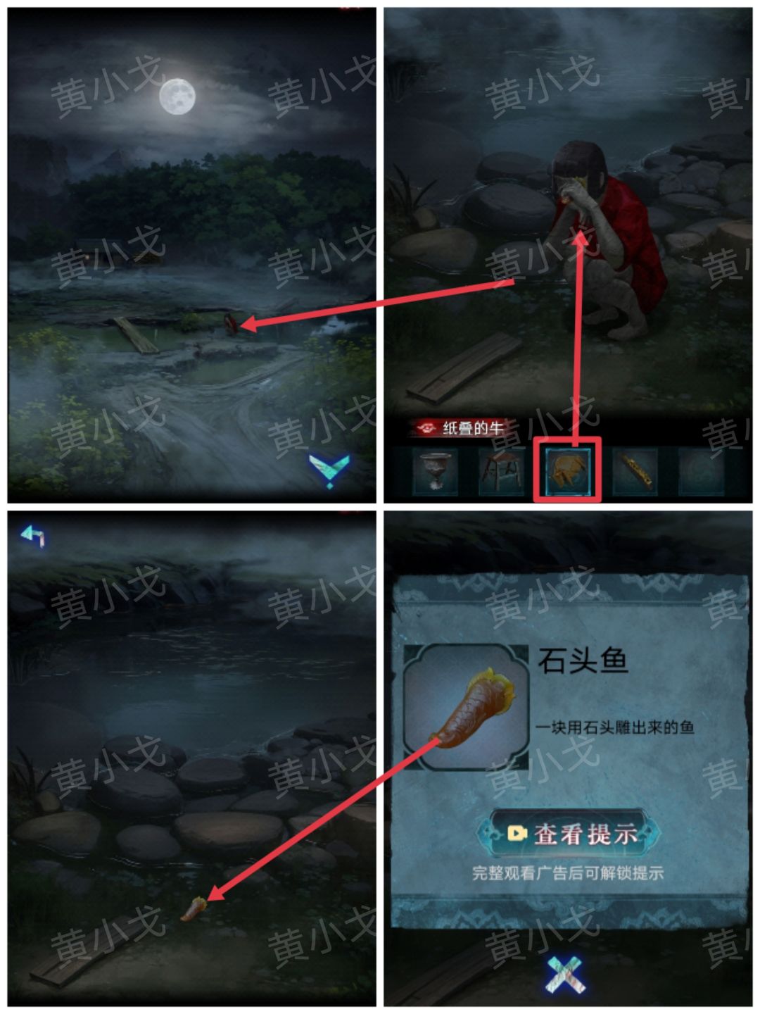 24.拿【纸叠的牛】给哭泣的女孩;拾取地上的【石头鱼】