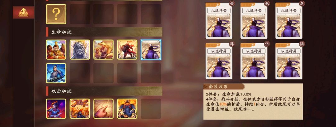 以逸待劳四件套+任意生命俩件套