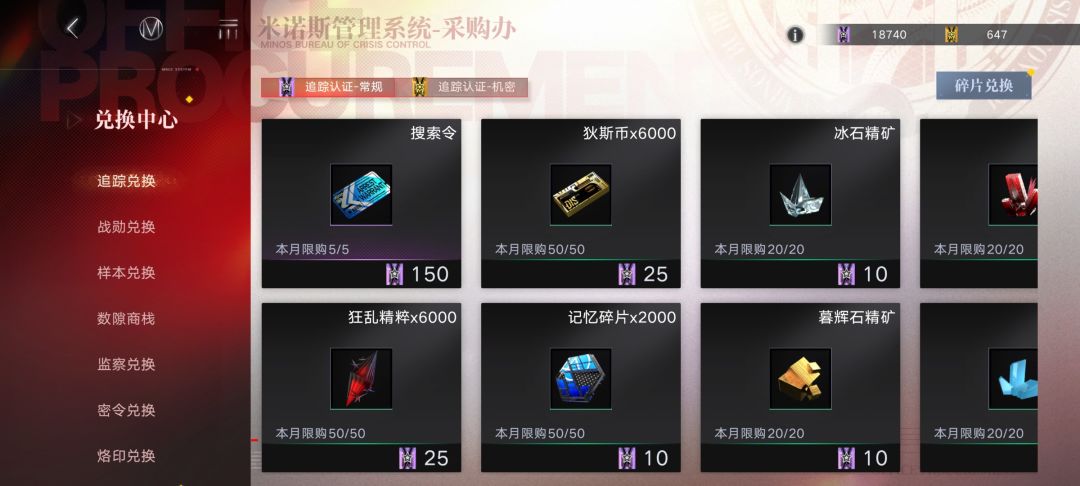 看到采购办的兑换中心—追踪兑换,和兑换中心—友情兑换总共获得8张搜索令,道具梦尘之影也在这里