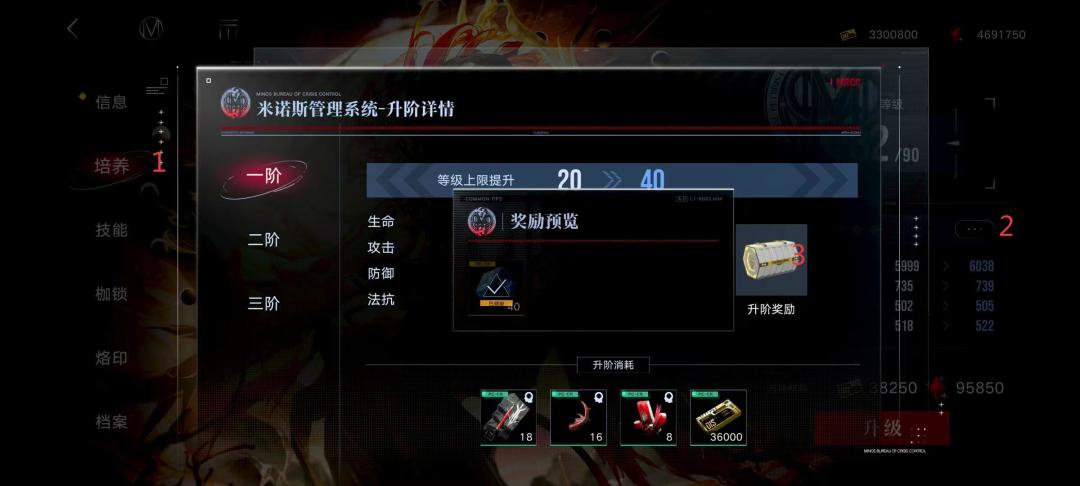 终于讲完了获取异方晶的副本,我们在看看主界面禁闭者页签。禁闭者升阶可获得异方晶,老局长异方晶紧缺可以升个一阶就行,萌新和资源不多局长切勿浪费资源