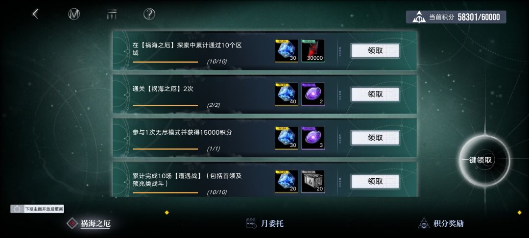 退出诫典再让我们看到的核心危机,当主线完成度达到百分之百可以领取100异方晶