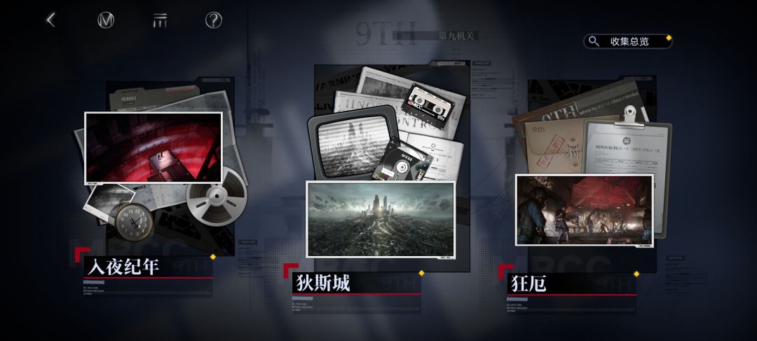 退回档案室初始界面以后屏幕往右边移动看到零镜系统,找到收集总览。随着主线进展程度,禁闭者审查进展程度,其他活动进展程度等可以获得异方晶