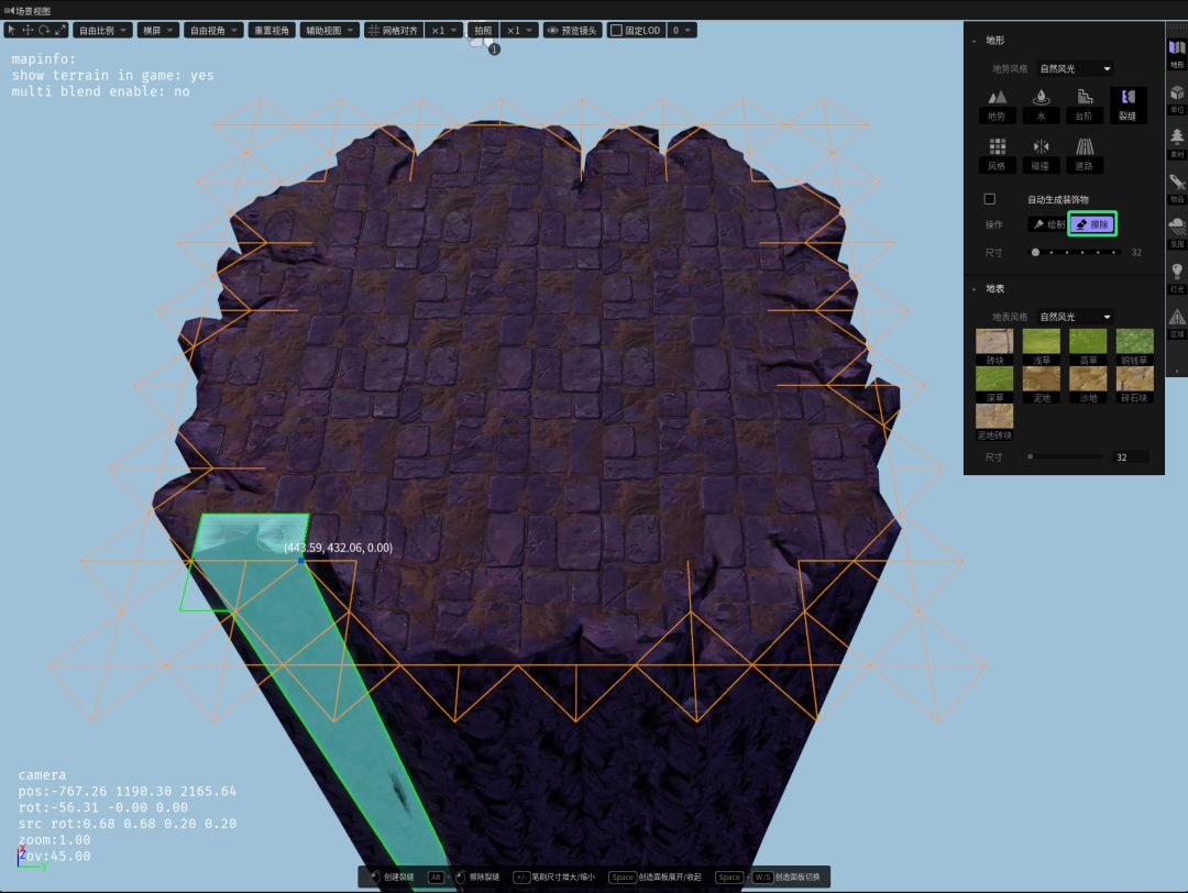 四四方方的地图多少看上去不太真实。那么为了制造一张仿佛天然生成的“浮空岛”,可以使用“裂缝”功能,来对地图的边缘进行修剪(P6)