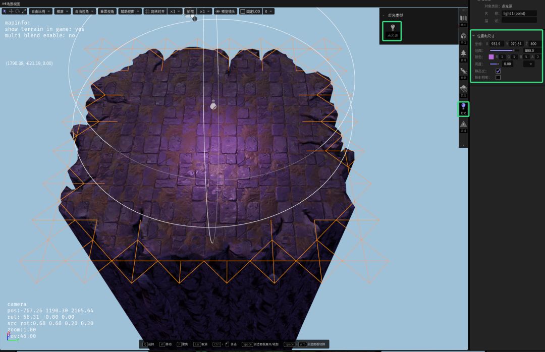 看上去还算真实的“浮空岛”绘制完了,但是看上去有点暗。那么我们可以在地图中央放一盏灯,找到“点光源”并添加在地图中央(P8)