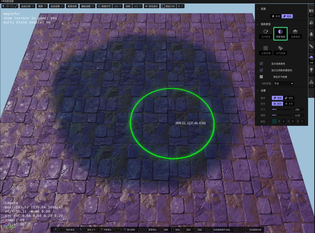可以看到创建完的新场景是一片绿油油的草坪。我们找到地表,往草坪上铺砖块(P3)