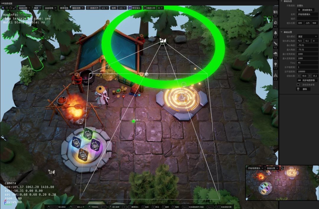 最后调整一下主界面的镜头,点上方预览镜头可以预览此镜头内的游戏场景,然后根据预览场景调整镜头位置和焦距等属性(P7)