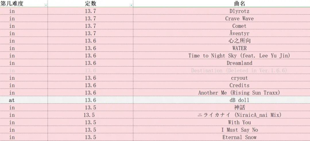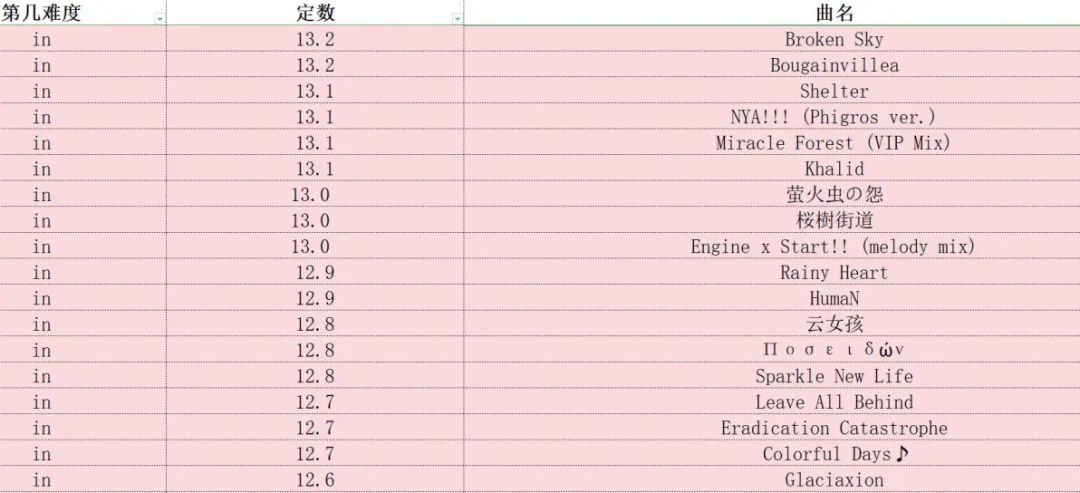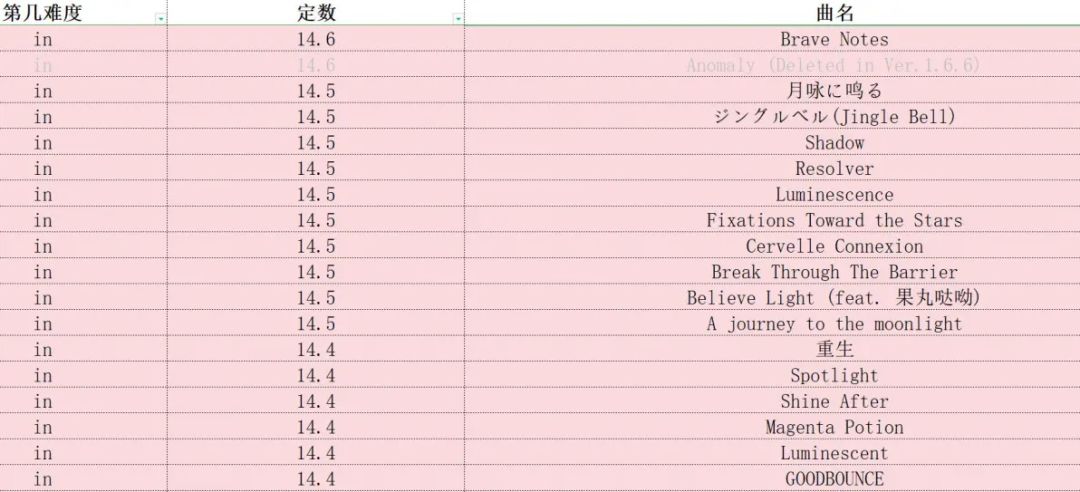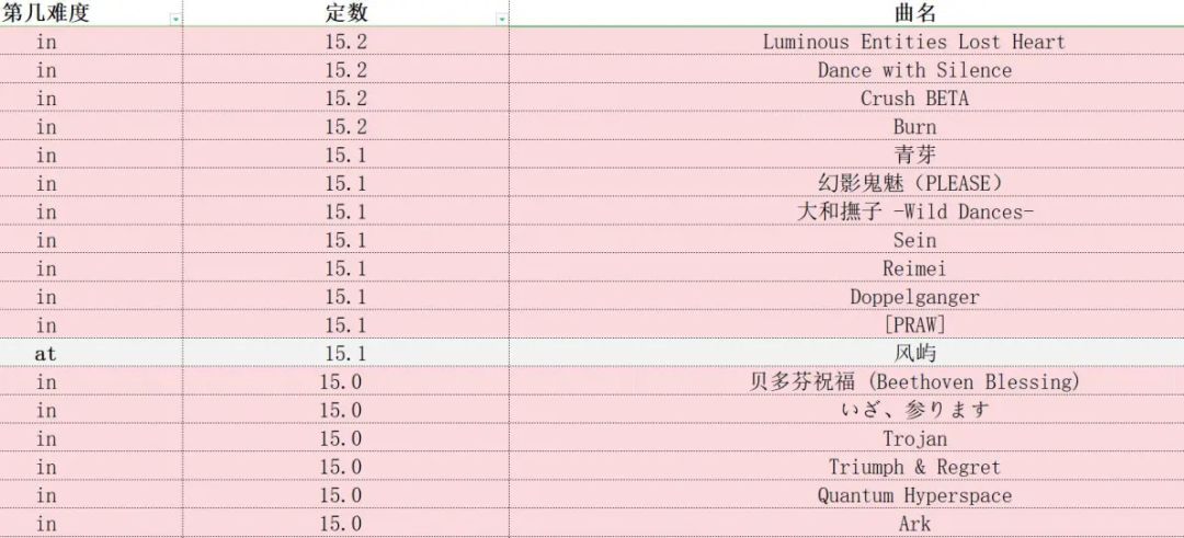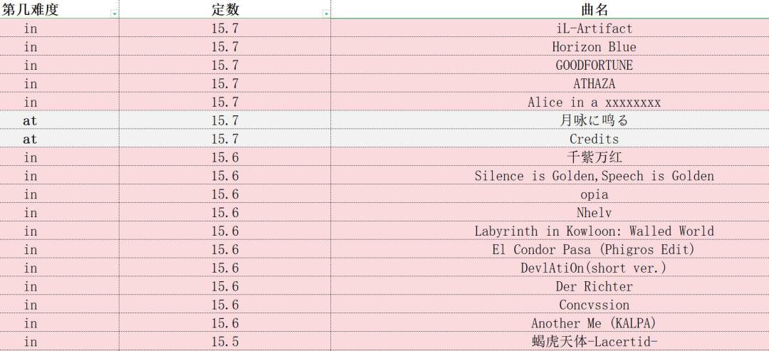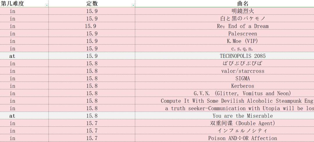 phigros定数表(仅限in、at,此专栏里图片上的成绩都是初见)