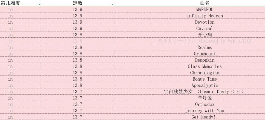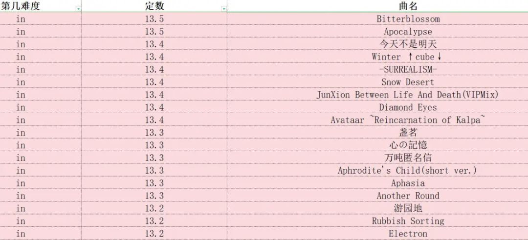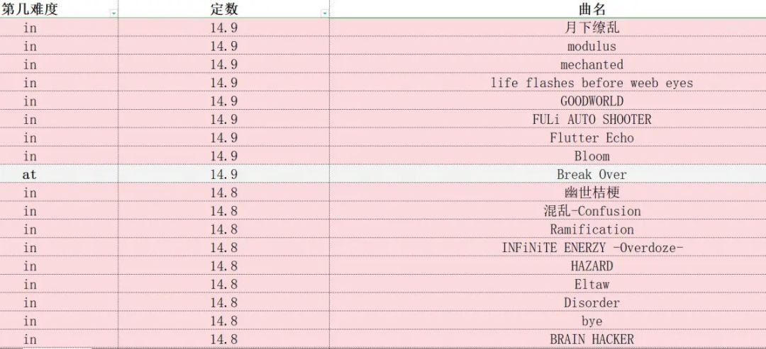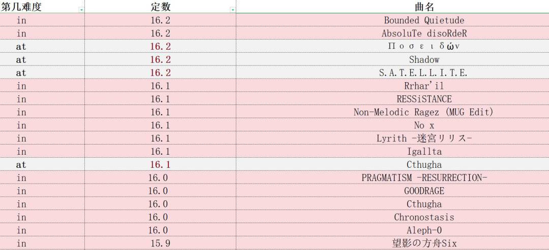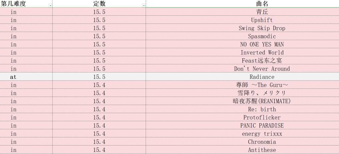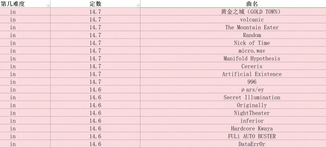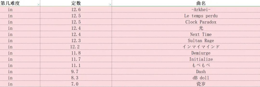 phigros定数表(仅限in、at,此专栏里图片上的成绩都是初见)
