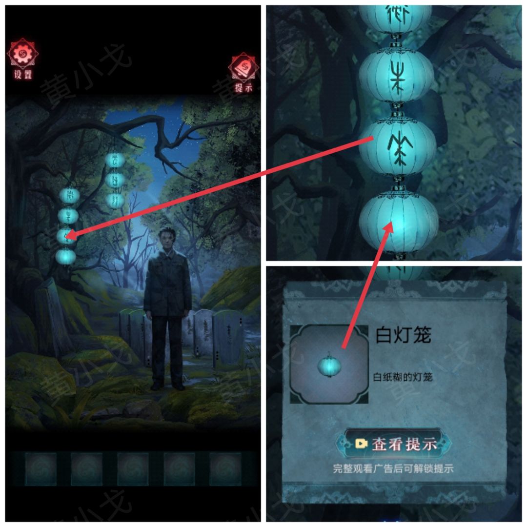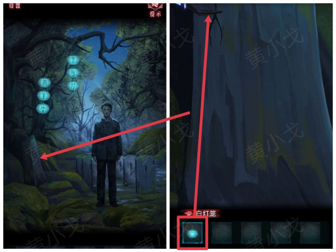 24.点击左侧墓碑,把【白灯笼】挂到钉子上
