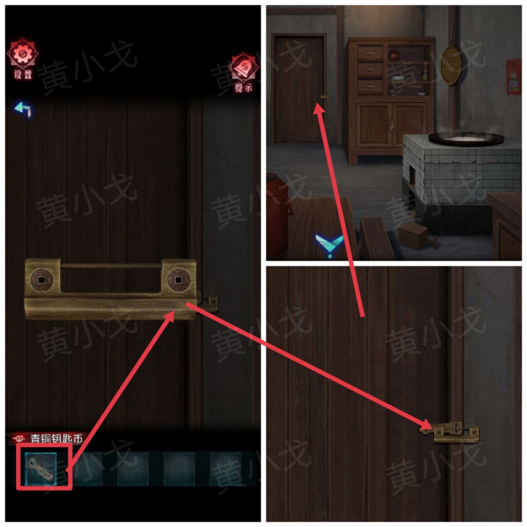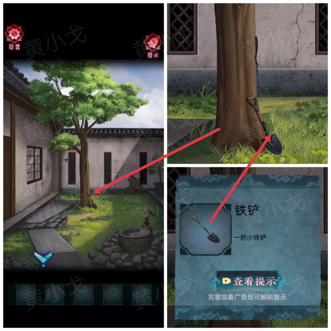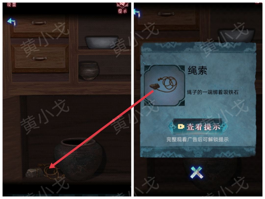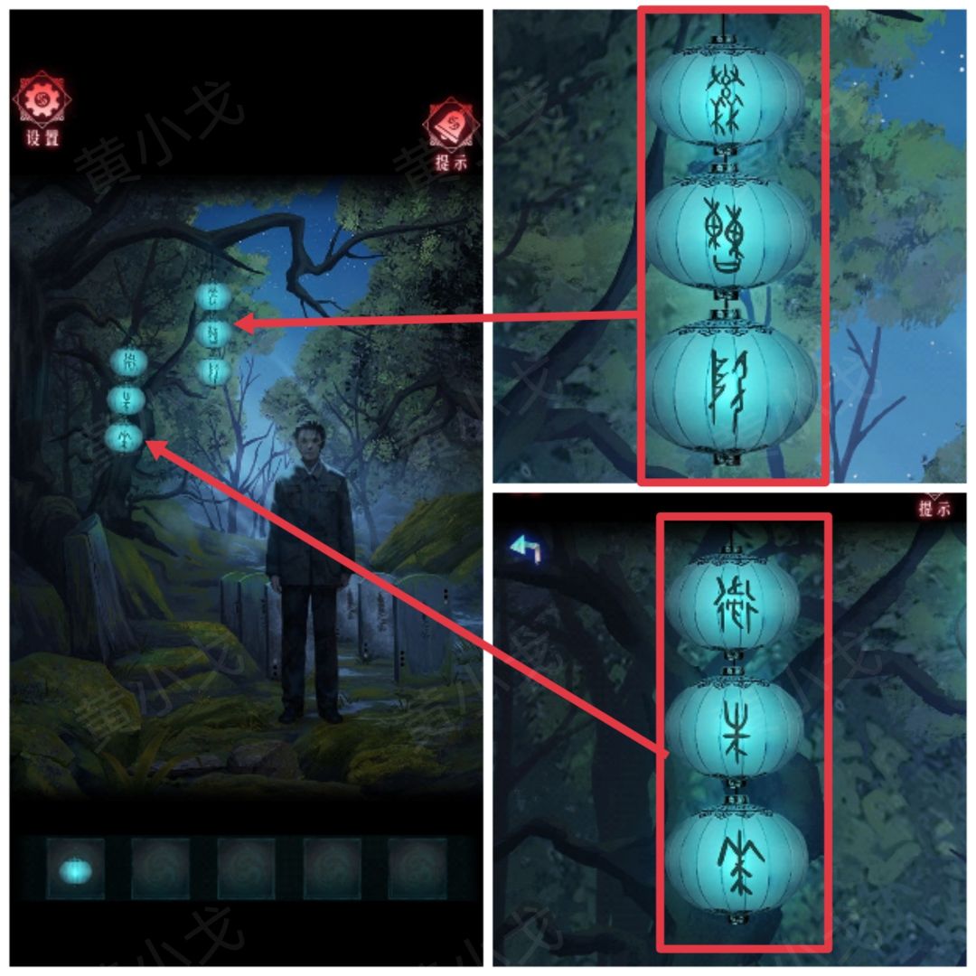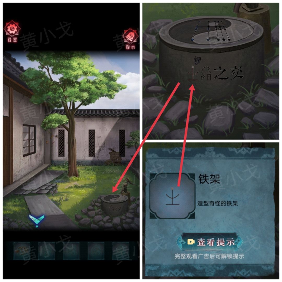 10.点击土坑里的盒子,根据凹槽上的图案,结合对挂画使用放大镜后得到的图案线索,调整至正确的文字
