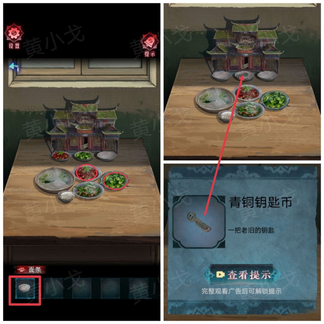 3.根据纸条内容,选择正确的菜品,放上【面条】;获得【青铜钥匙币】