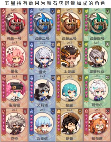 (3)成长加成由本赛季四个角色的养成度决定,可以在主界面中间的加速按钮中查看;赛季角色每个月轮换,每一颗星加10%的魔石获取量,优先拉到五星,四个五星即可200%满加成。